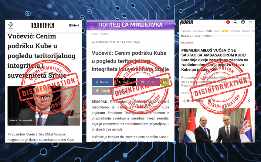 Kryeministri i Serbisë, Millosh Vuçeviq, gjatë një takimi me ambasadoren e Kubës në Beograd, dezinformoi për gjoja “spastrimin etnik të serbëve në Kosovë” dhe “terrorin” e kryeministrit Albin Kurti.