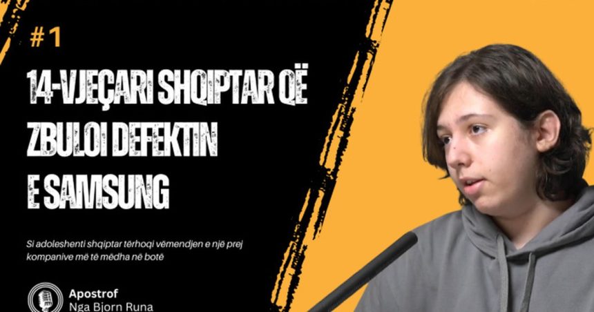 Andrea Toska, i riu shqiptar që kohët e fundit tërhoqi vëmendjen e publikut pasi arriti të zbulonte një defekt të rëndësishëm në telefonat Samsung, ishte i ftuar në episodin e parë të podcastit ‘Apostrof nga Bjorn Runa’.