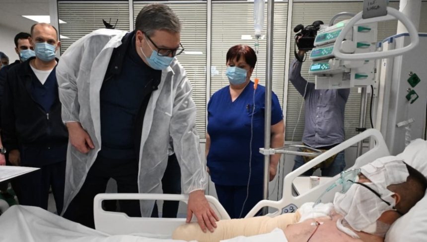 Gjatë vizitës, Vuçiq u pa duke ofruar siguri për disa nga pacientët më të lënduar, duke përfshirë një me djegie të rënda. “Mos u shqetësoni, fakti që është i mbuluar me djegie do të rregullohet më vonë”, thuhet t’i ketë thënë Vuçiq viktimës, sipas medias lokale B92.